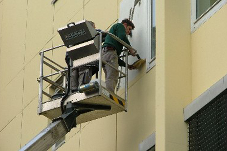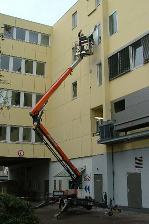 Bei kleineren Fassadensanierungen setzen wir Hubwagen ein.
