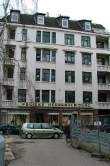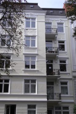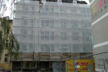 Vor und nach der Fassadensanierung. Die Gebäude werden vorschriftsmäßig eingerüstet und abgenetzt. Nach der Sanierung erstrahlt das Gebäude wie neu.